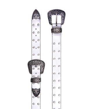 Cinturón de Vinil Plata Doble Hebilla con Remaches