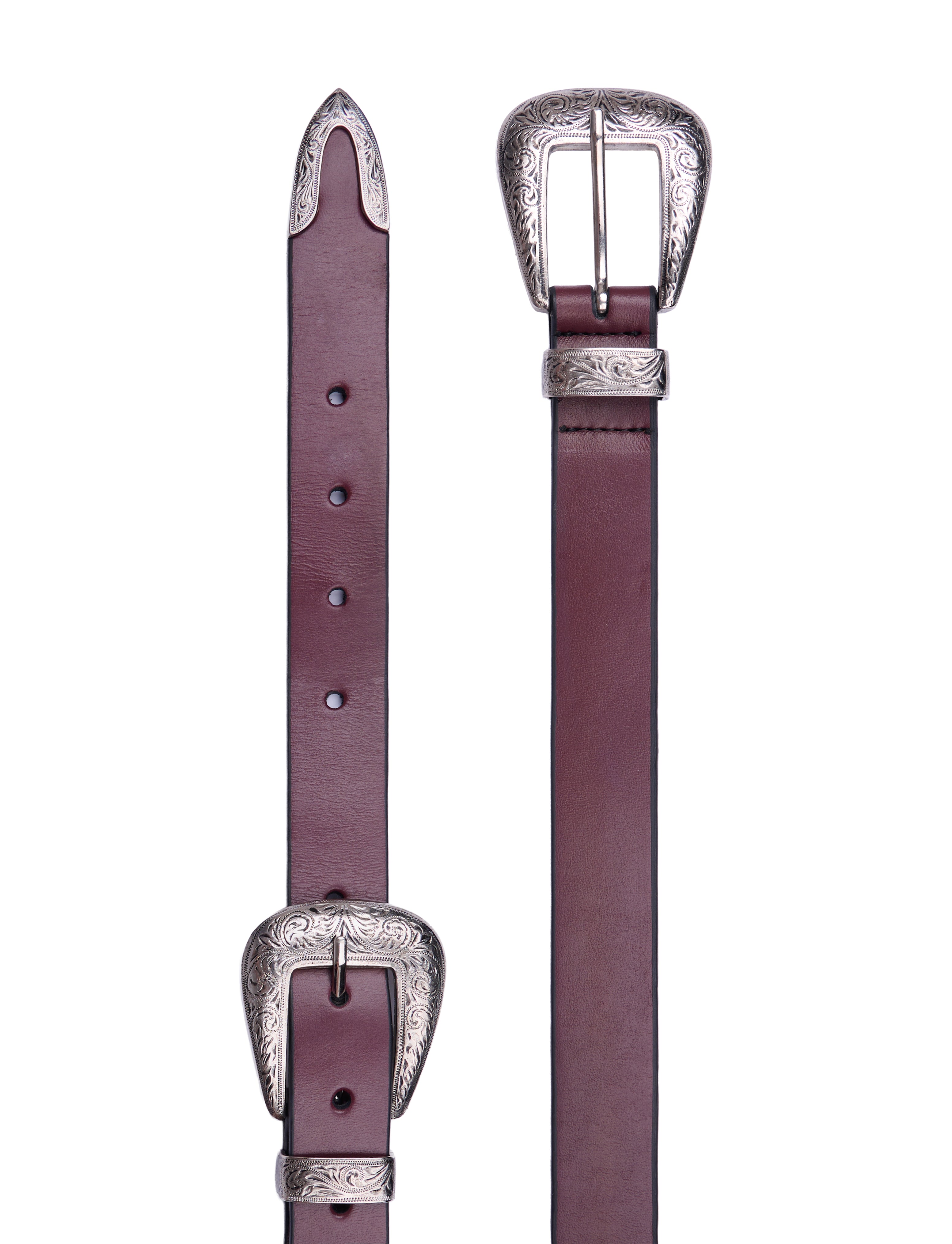 Cinturón de Piel Doble Hebilla Skinny Vino