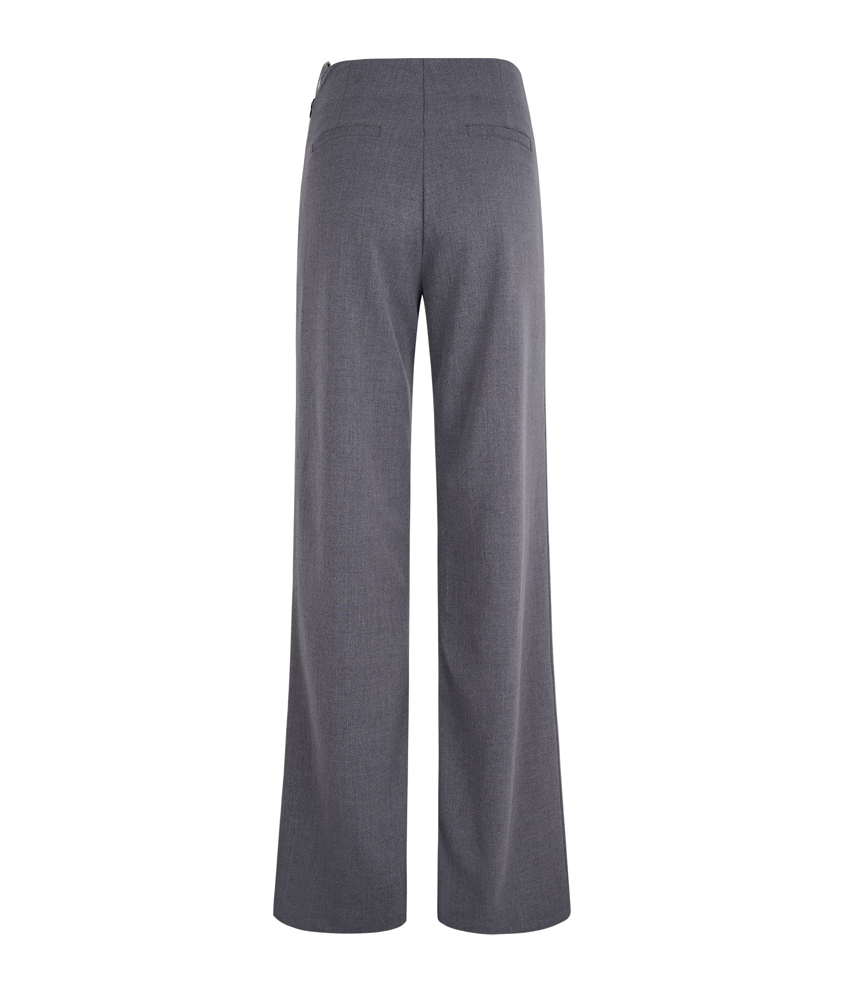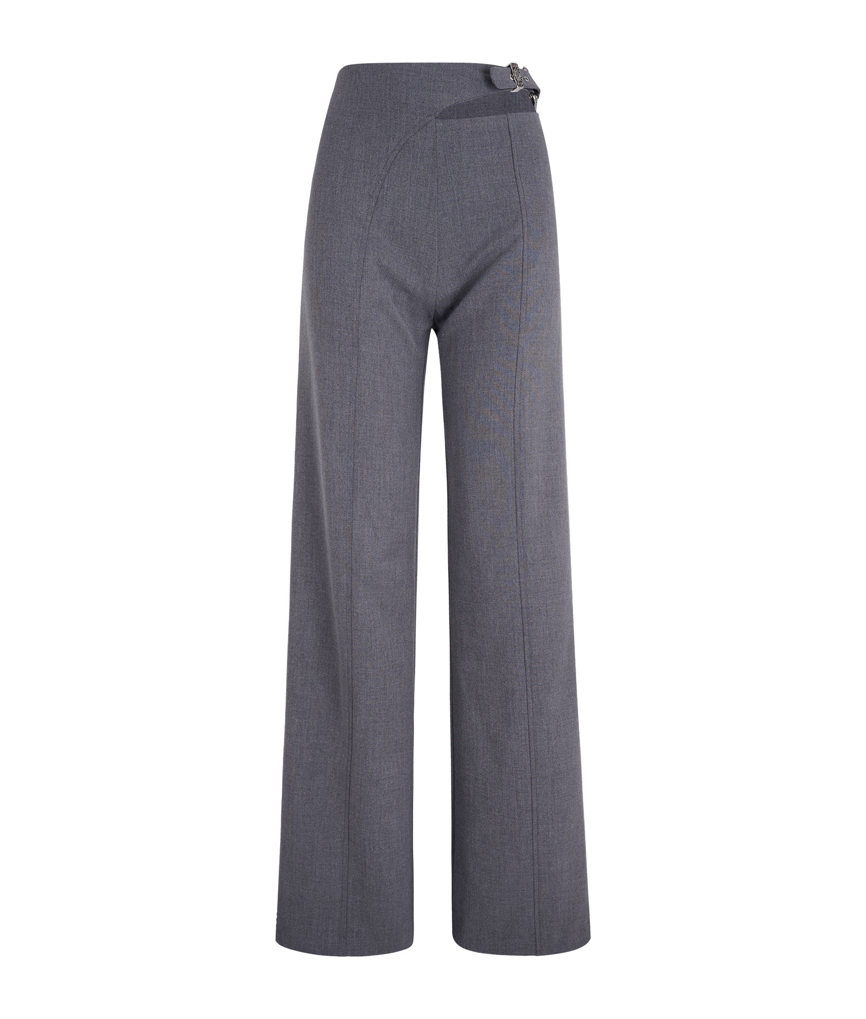 Pantalón de vestir color gris con corte y hebilla en el costado