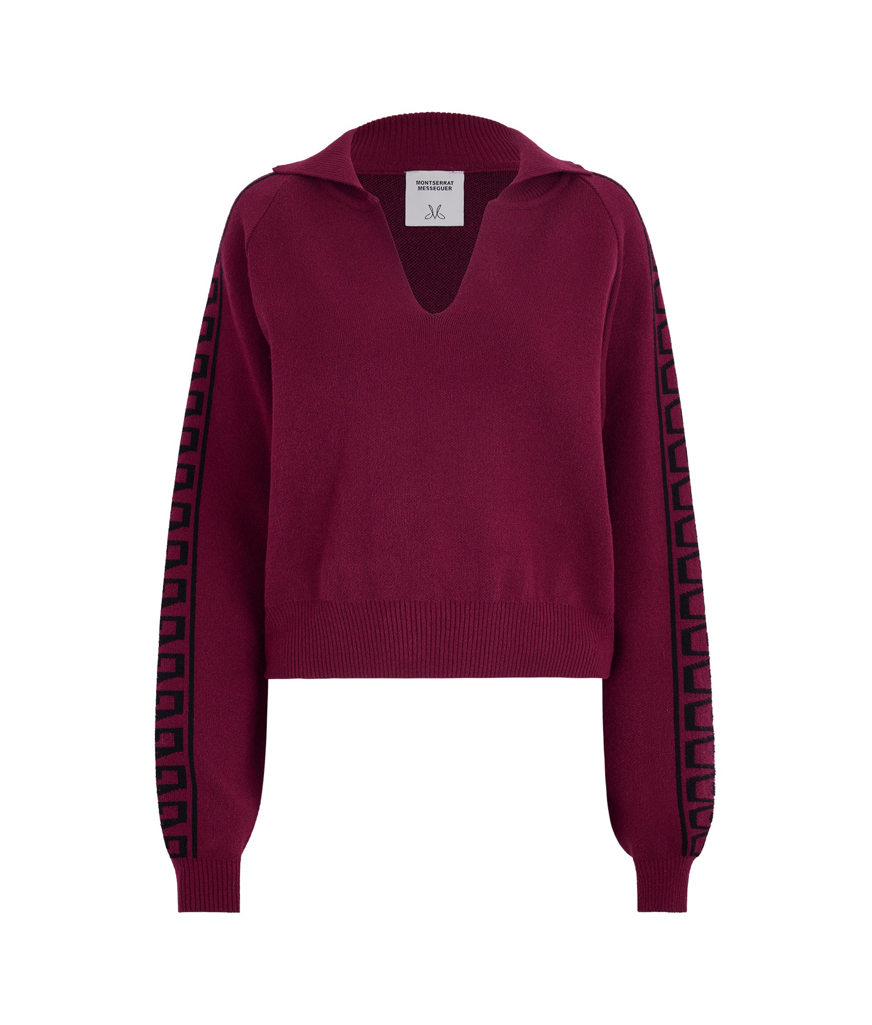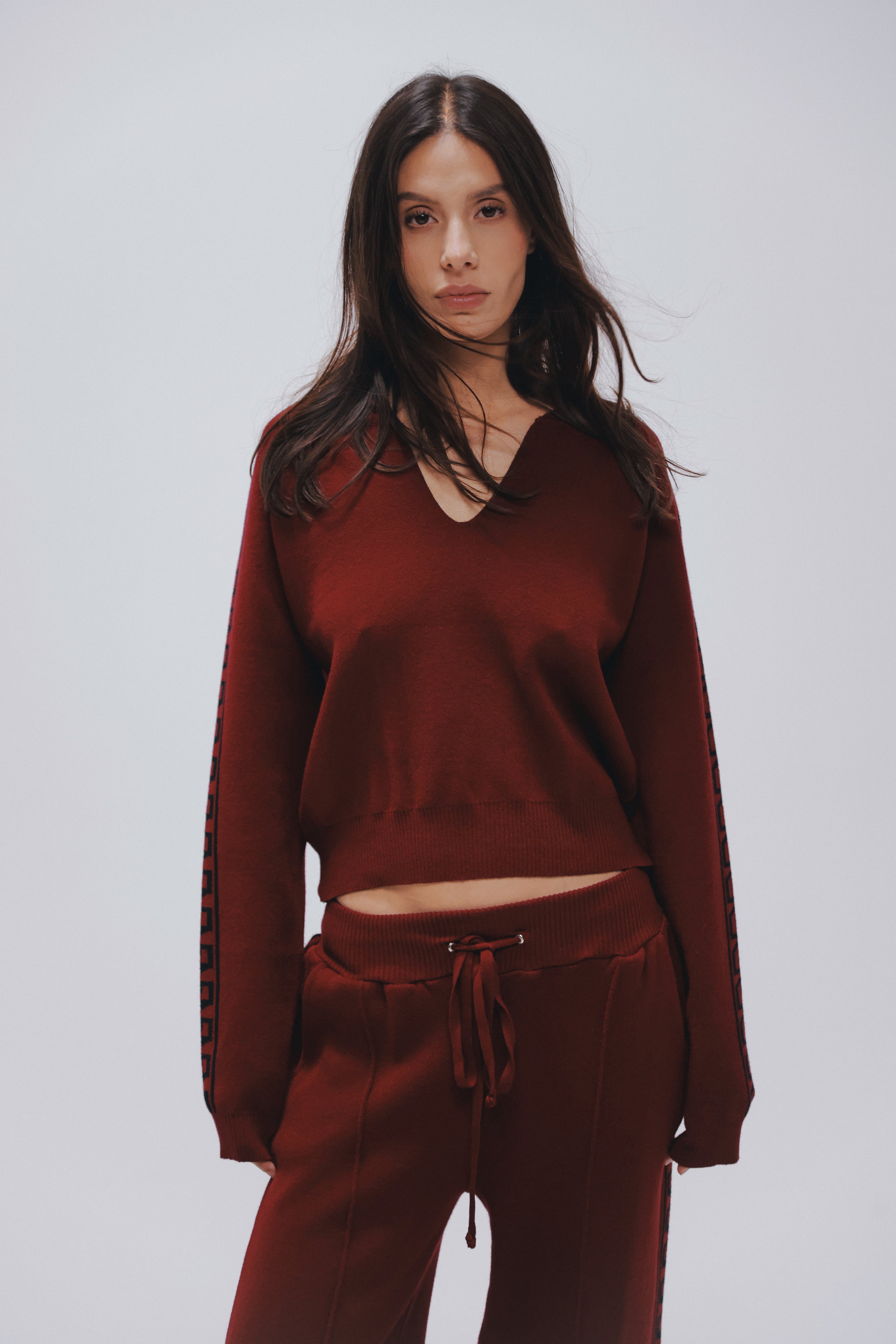 Tracksuit de sudadera cropped y pantalón wide leg color vino con grecas a los costados en un negro