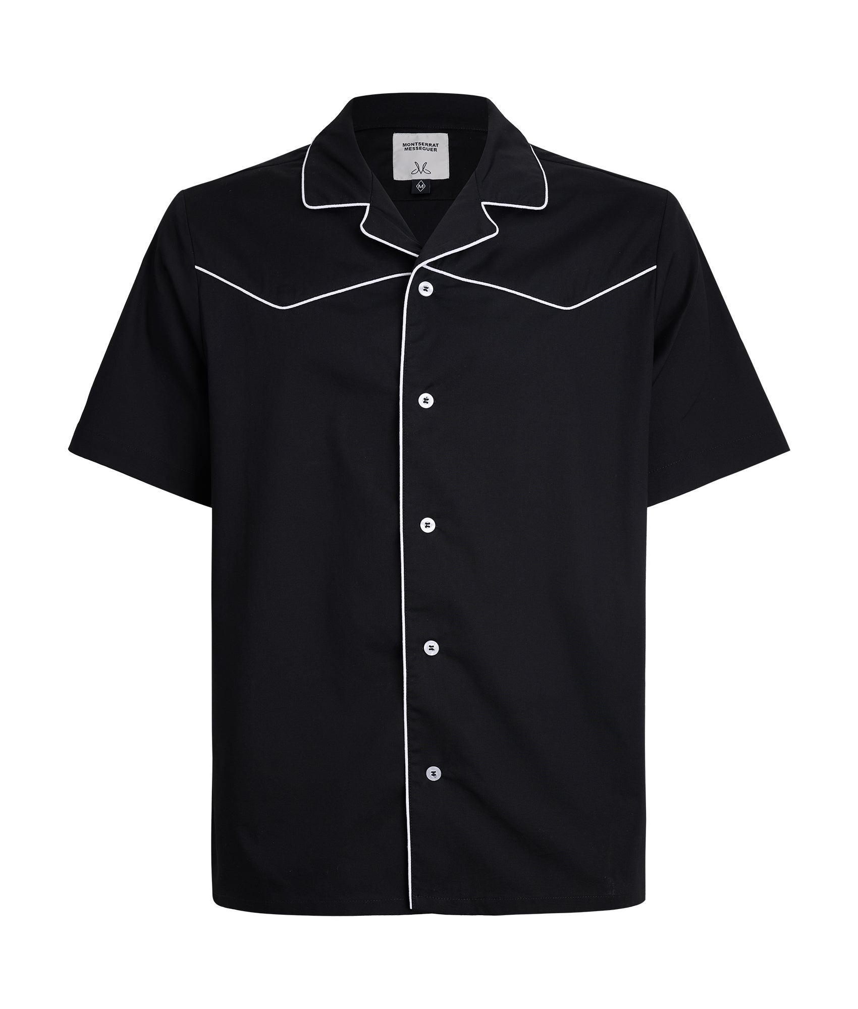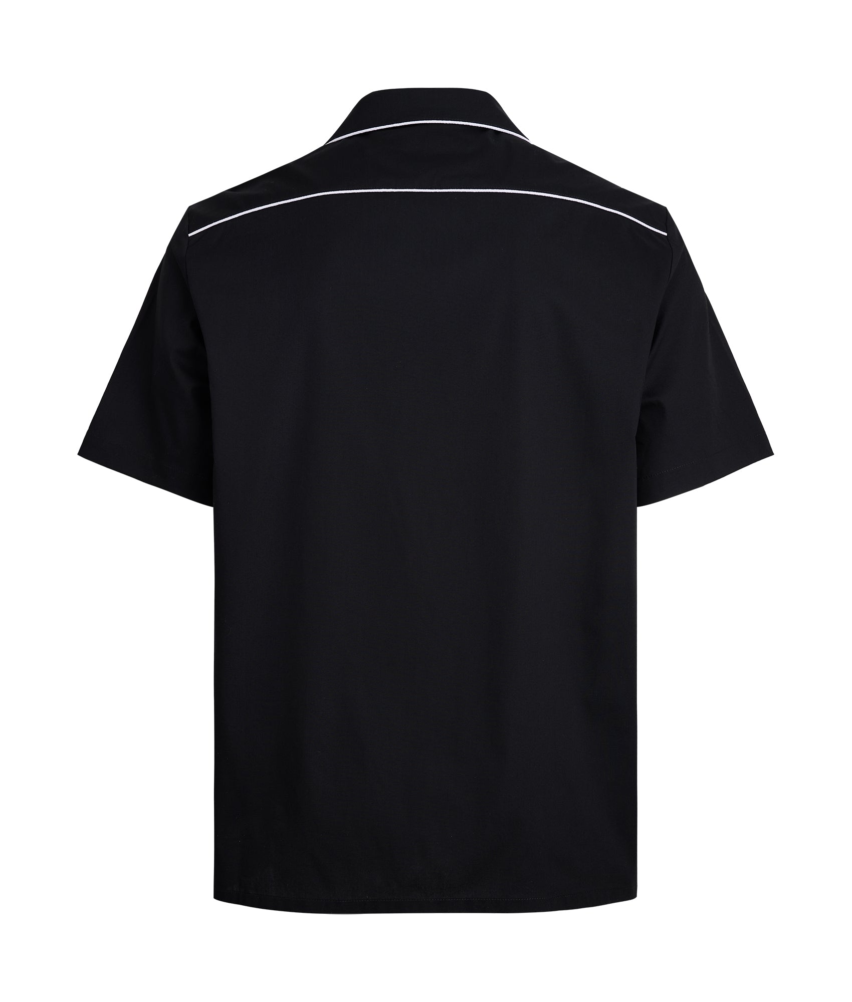 Set de camisa clásica negra de algodón con ribetes blancos contrastantes y bermuda clásica 100% algodón con cintura elástica y bolsillos traseros.