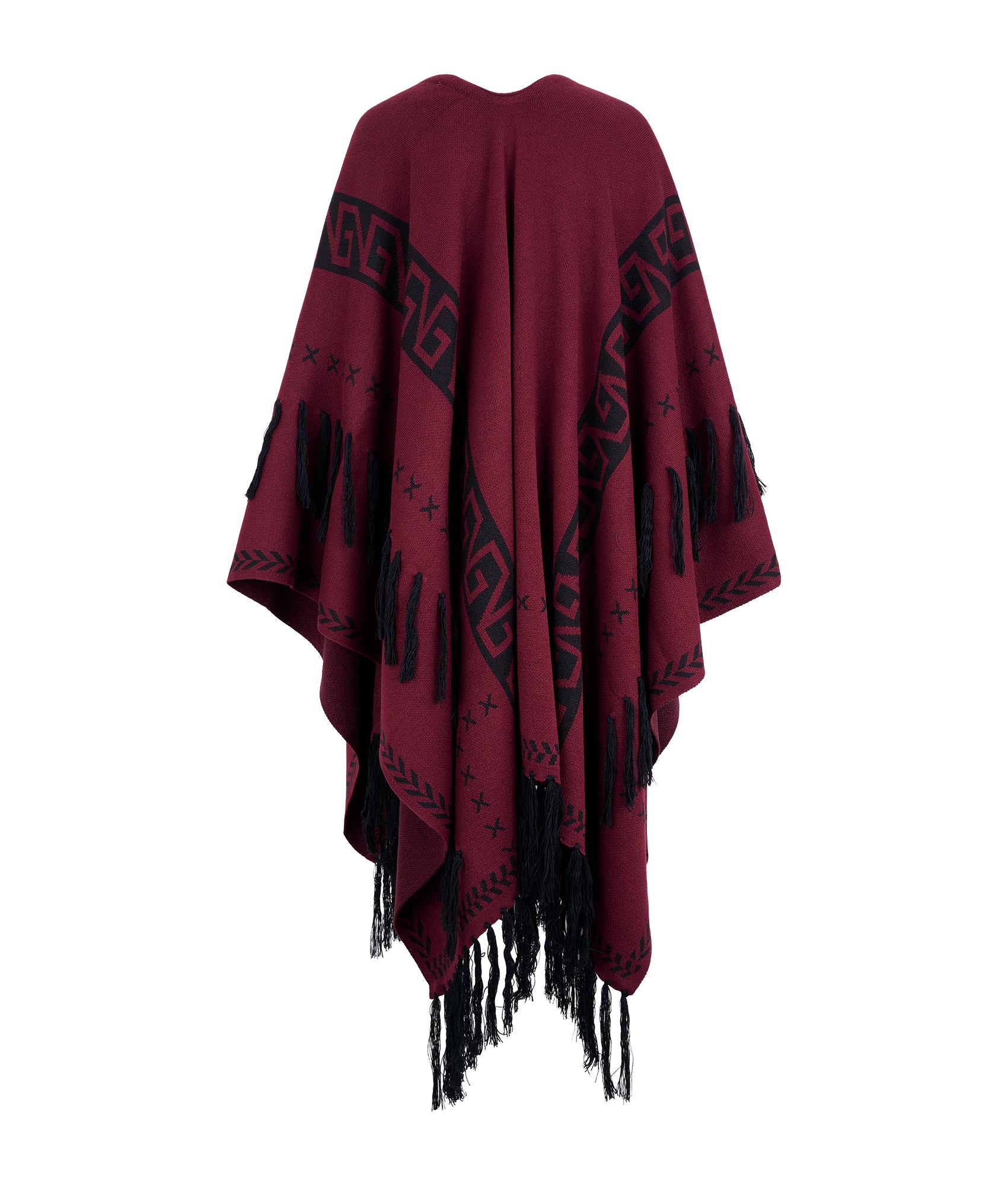 Poncho abierto color vino con grecas color negro